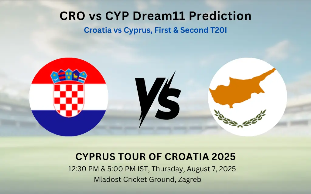 CRO vs CYP Dream11 Team Prediction for Cyprus tour of Croatia 2025 Preview: In the upcoming Cyprus tour of Croatia 2025 , Cyprus will play against Croatia in the First & Second T20I of the series. This is a four-match T20I series. Both teams are playing each other for the first time at the international level. Croatia is known for its courageous football team. They made it to the finals in the FIFA World Cup 2018. Coming back to cricket, both teams will play each other twice on August 7 & 8.
