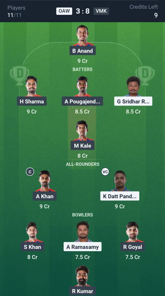 OAW vs VMK Dream11 Prediction Grand League Team: