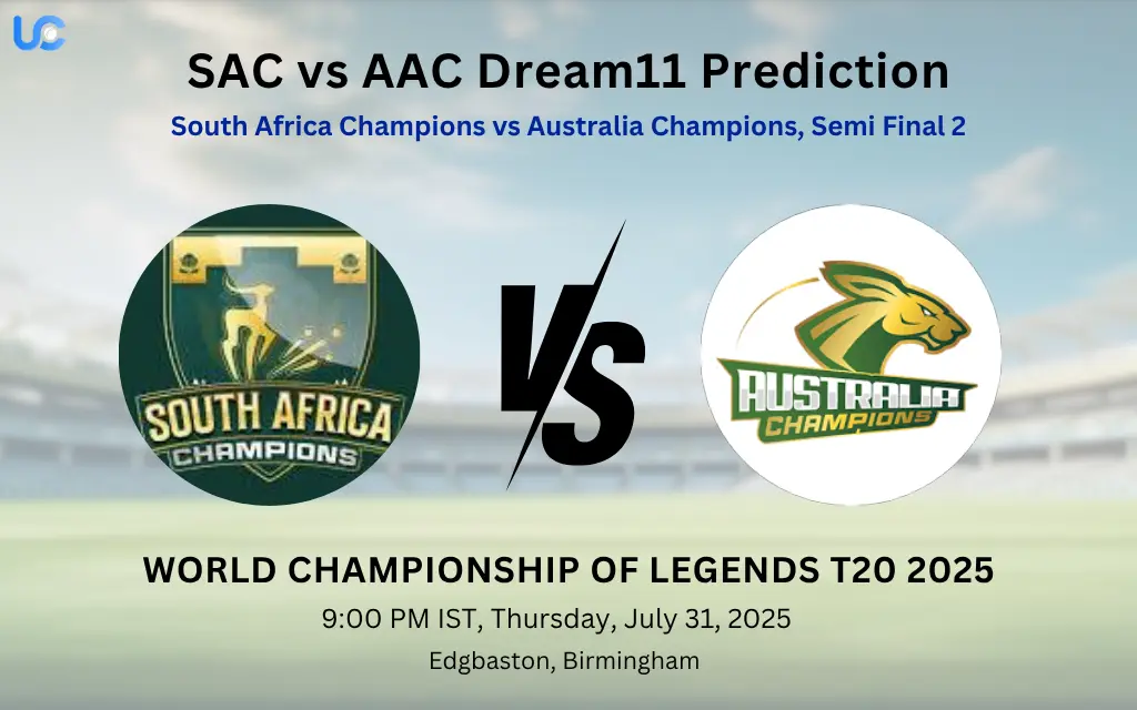 Home»Fantasy Cricket»Dream11 Prediction»SAC vs AAC Dream11 Prediction: Today’s Semi Final 2, Fantasy Cricket Tips, Captain Choices, Playing XI & Injury Updates – World Championship of Legends T20 2025